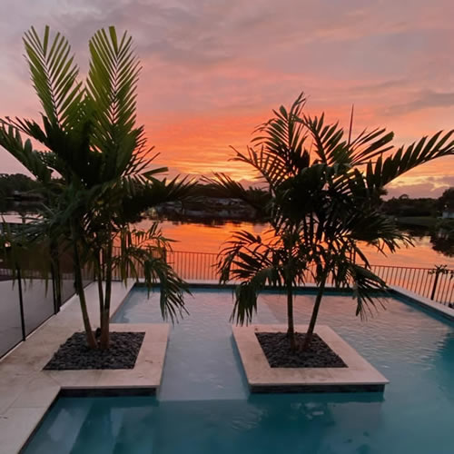 Transform your landscape into a luch tropical paradise with virtual designs; including palm trees, vibrant exotic flowers, cascading water features.