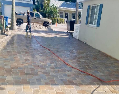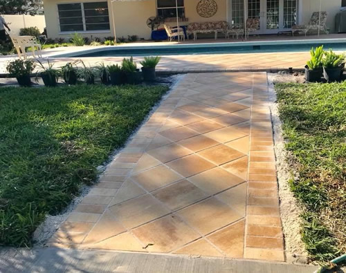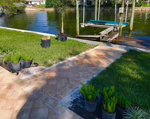 Paver tile walkway leading to the boat ramp with a custom design tailored to the customers desire