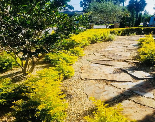 Beautiful flagstone walkway set in pee gravel for a true country feel and look